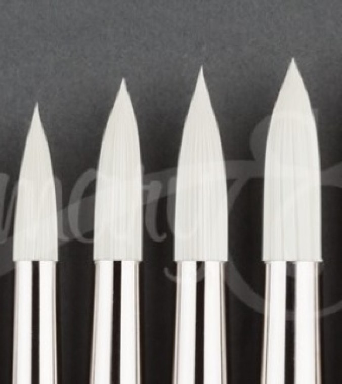 Ivory je skvělá syntetická štětina v celé své kráse. Jedná se o kombinaci nylonu a vepřové štětiny. Špičatý konec si drží tvar a může být použit na jemné a přesné linky. Větší štětce této sady slouží rovněž pro široké tahy a vyplnění větších ploch.